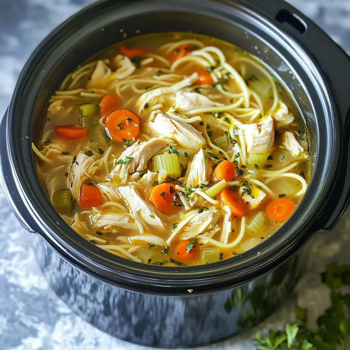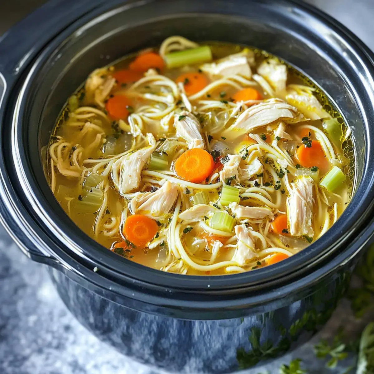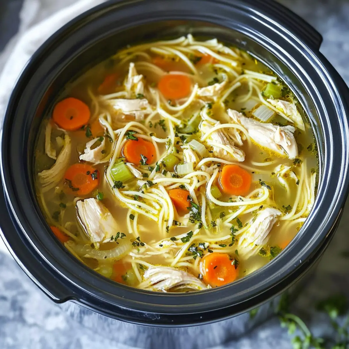 Feel the warmth of home cooking wrap around you as you prepare this delightful Slow Cooker Chicken Noodle Soup!
