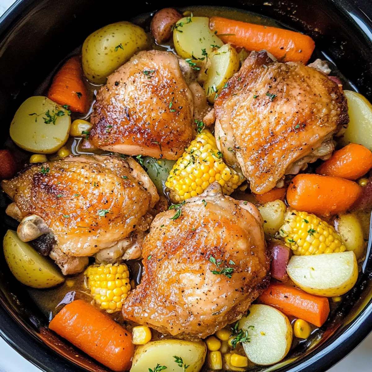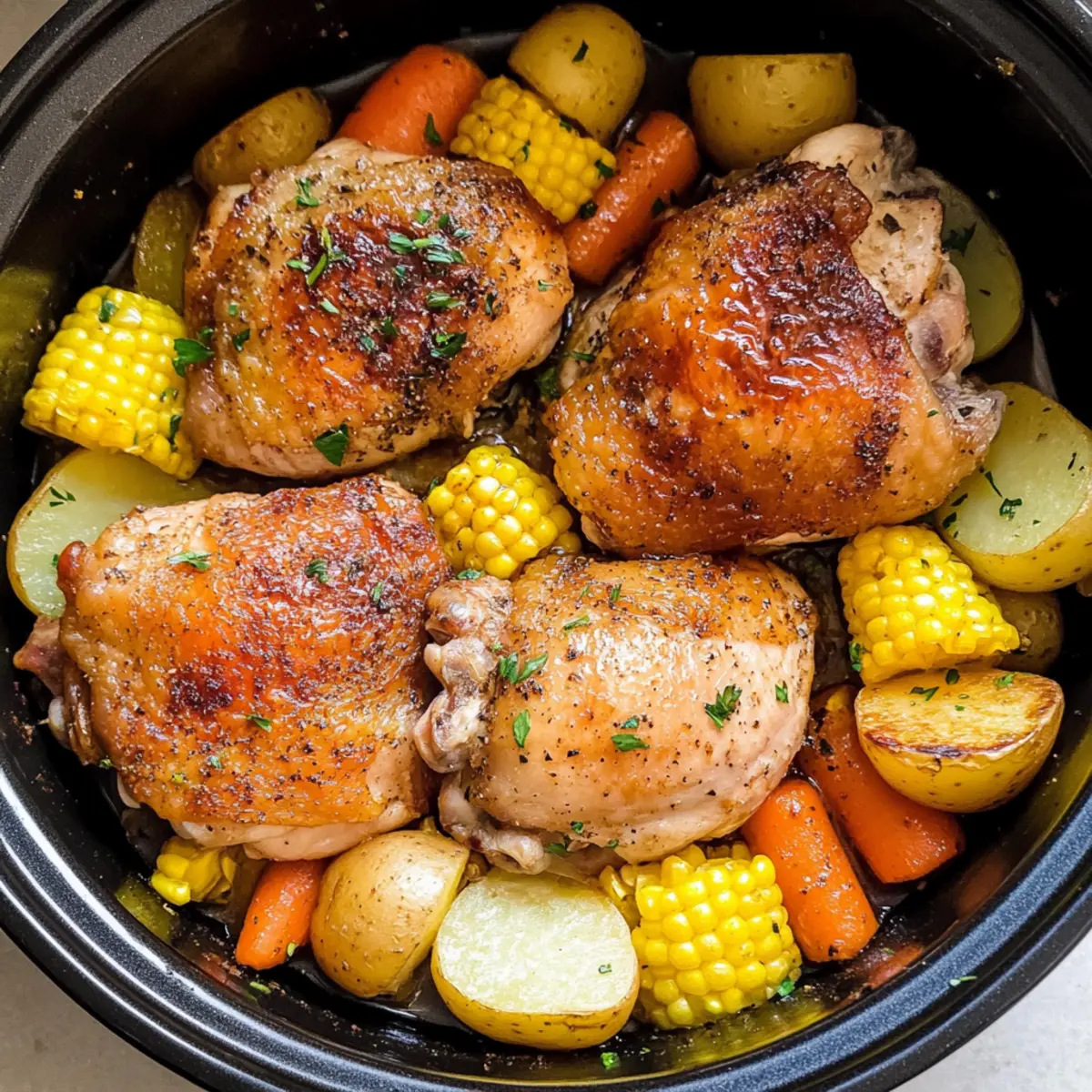Absolutely! When choosing vegetables for your Slow Cooker Chicken Thighs, look for carrots that are firm with vibrant color, and baby red potatoes that are smooth without dark spots. Fresh corn should be sweet and juicy, so check for plump kernels. For onions, choose those that are heavy for their size and free from any soft spots.