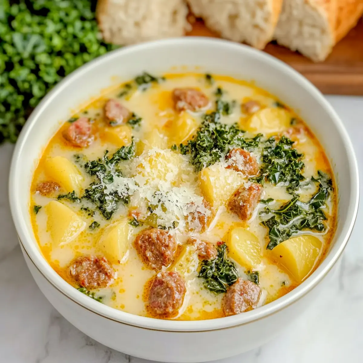 Absolutely! For the best flavor, choose high-quality Italian sausage with a good fat content—this enhances the richness of the soup. When it comes to potatoes, look for Russets for a heartier texture or Yukon Golds for creaminess. Fresh garlic and onions will always give you the most flavor. Make sure to inspect your kale; avoid any that looks wilted or discolored.
