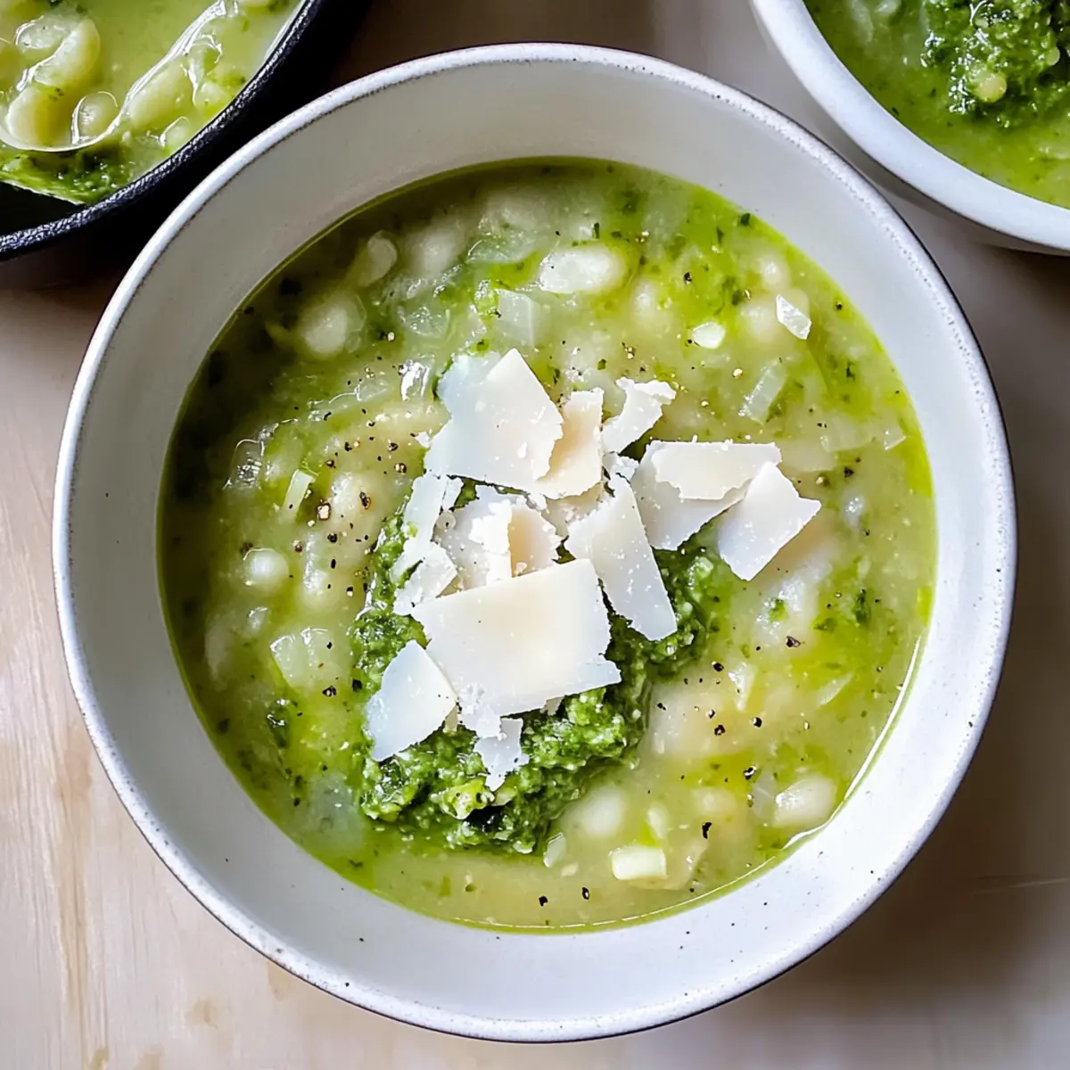 - Ladle the soup into bowls and sprinkle shaved Parmesan on top before serving.