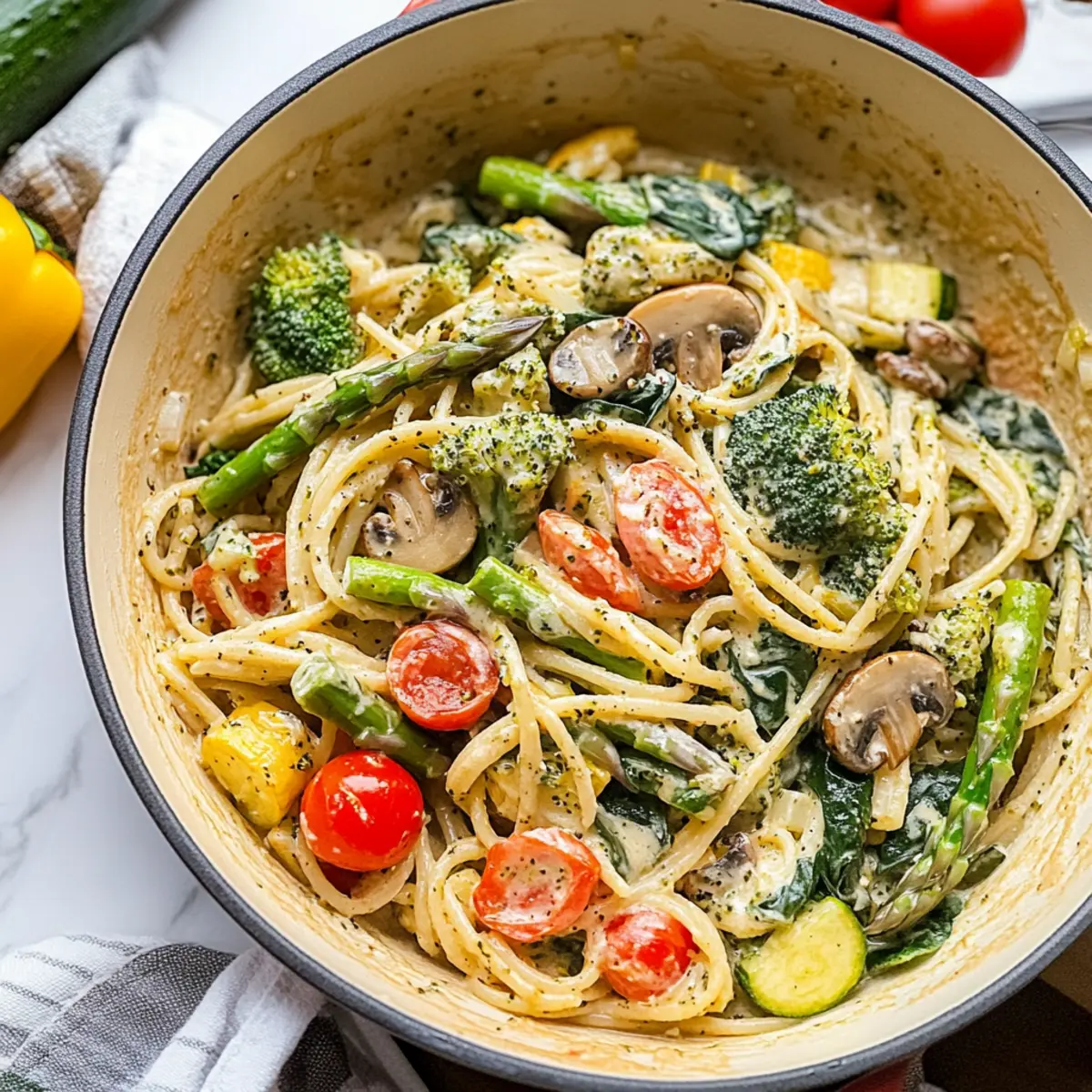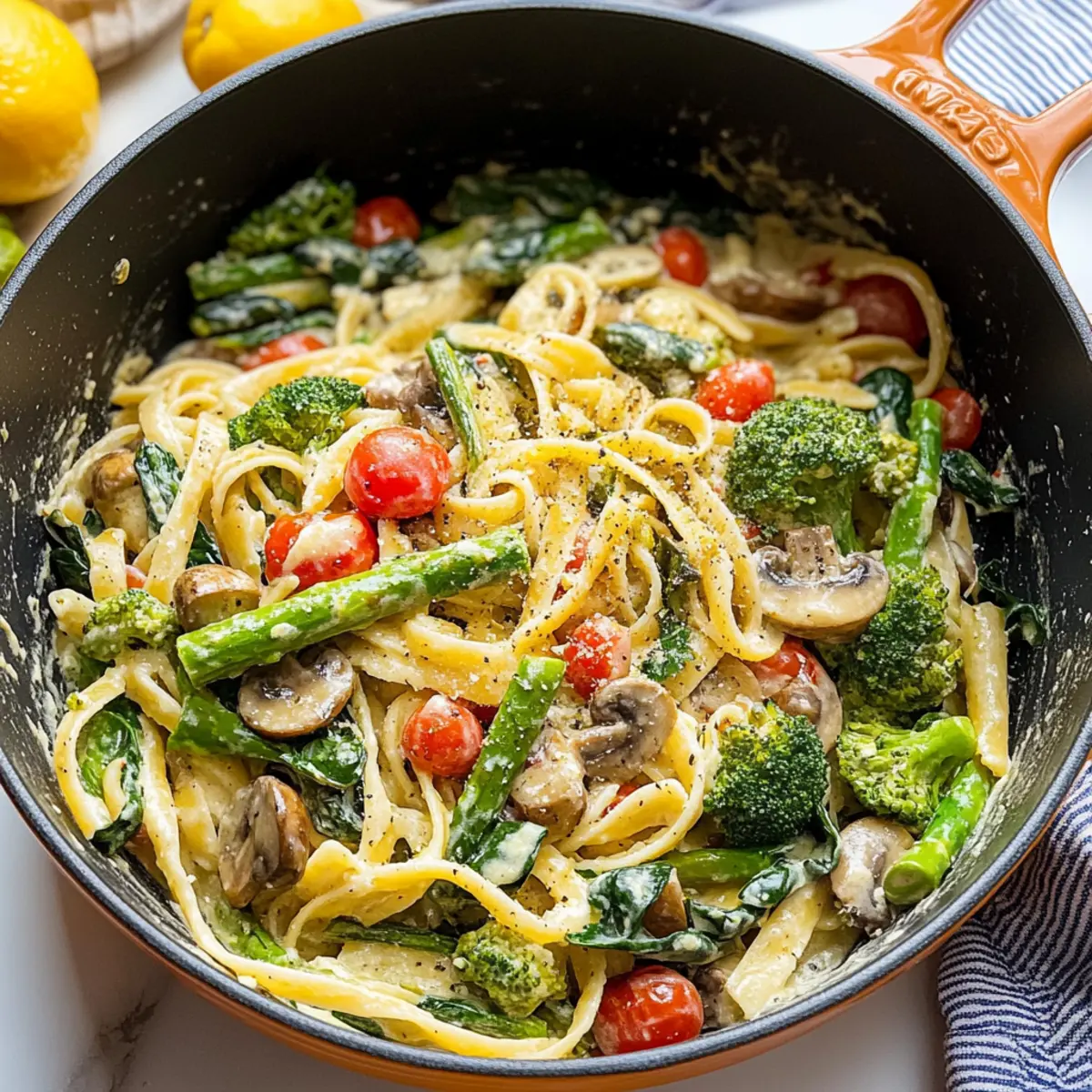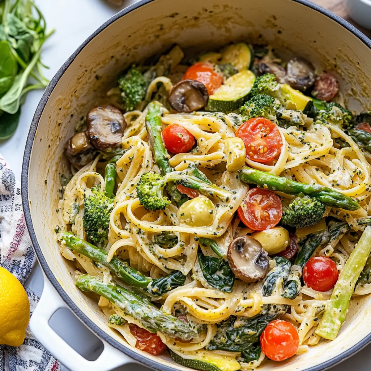 Experience the vibrant flavors of spring with this Creamy Spring Pasta Primavera, a delightful vegetarian dish packed with seasonal vegetables.