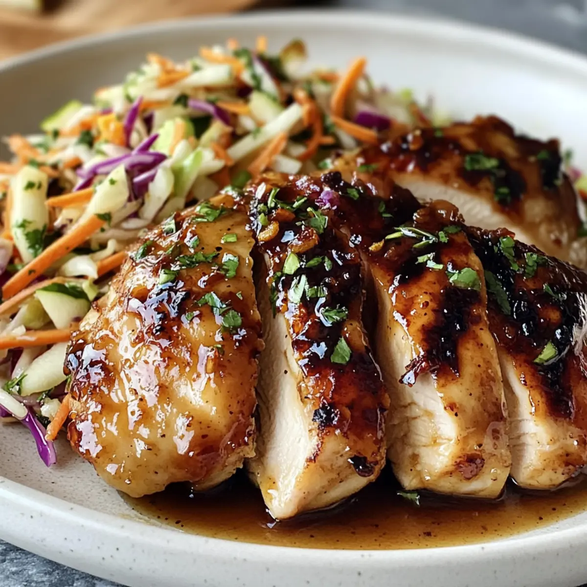Yes, you can! I recommend freezing the glazed chicken without the slaw. Wrap the chicken tightly in foil or place it in a freezer-safe bag for up to 2 months. When you’re ready to enjoy, thaw it in the refrigerator overnight and reheat gently in a skillet, adding a splash of water or broth for moisture.
