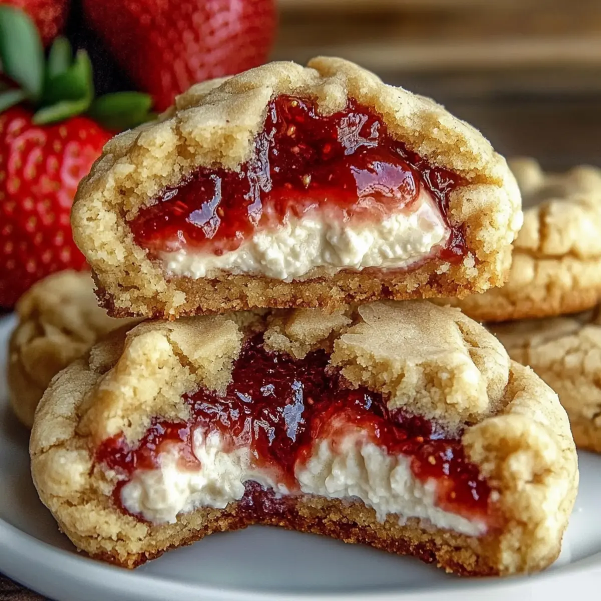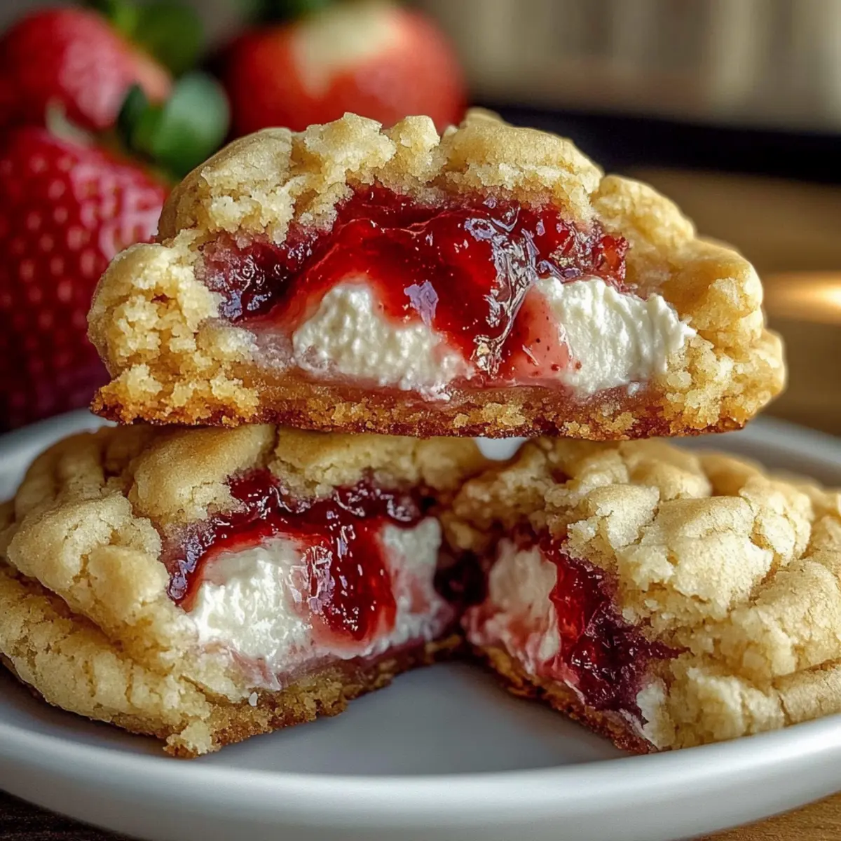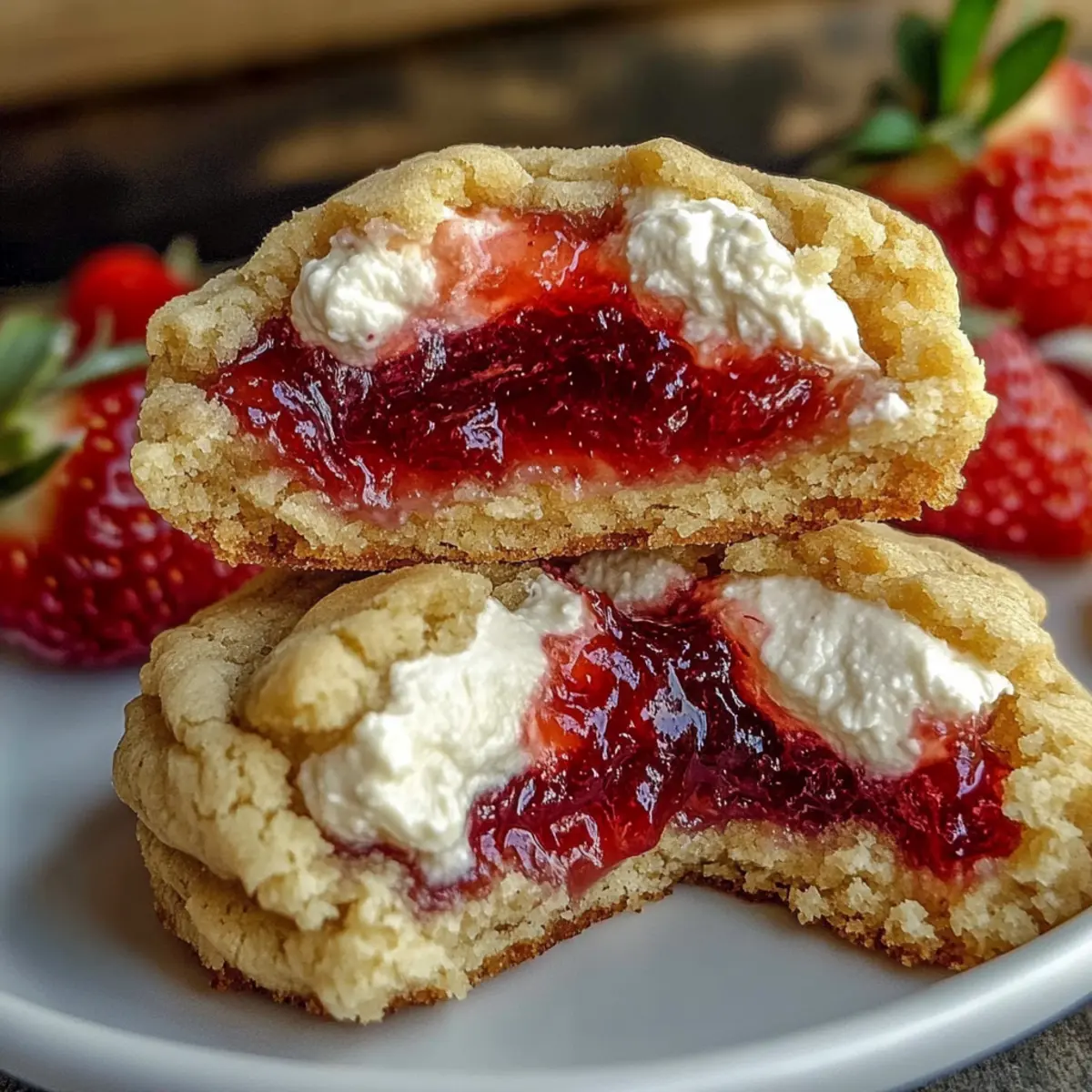 These Strawberry Cheesecake Cookies combine creamy cheesecake centers and sweet strawberry jam, making them an irresistible treat for dessert lovers.