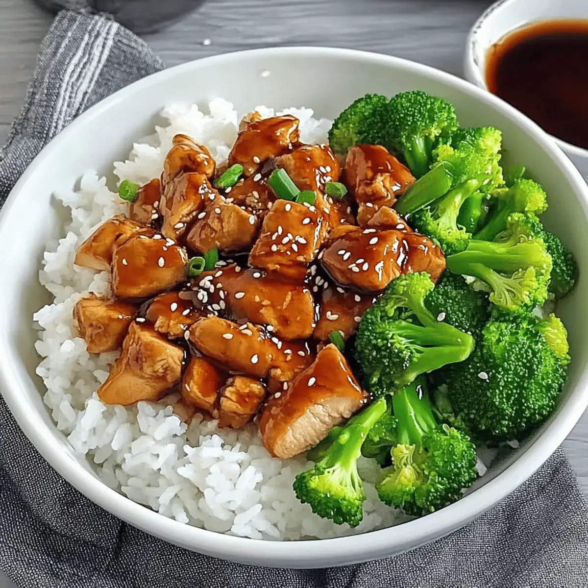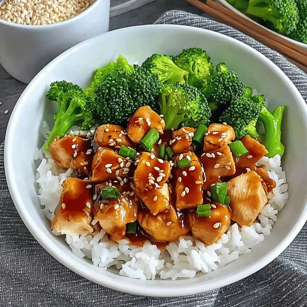 Flavorful Garnish: Don’t skip the sesame seeds and green onions! They not only elevate the look but also contribute a lovely texture and flavor to your Teriyaki Chicken Rice Bowl.