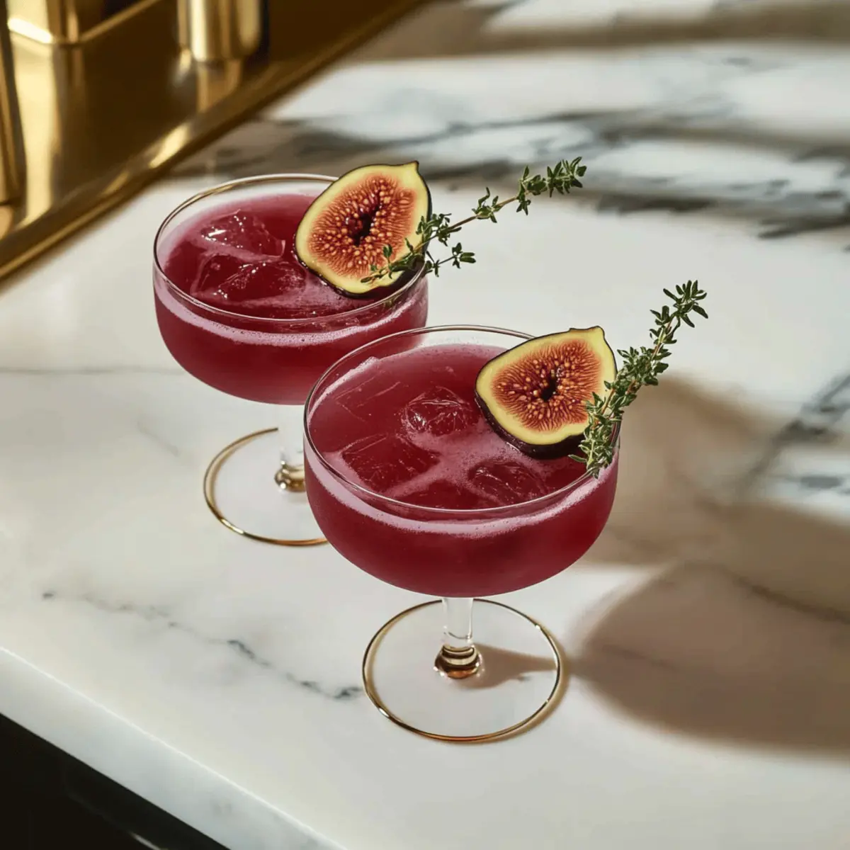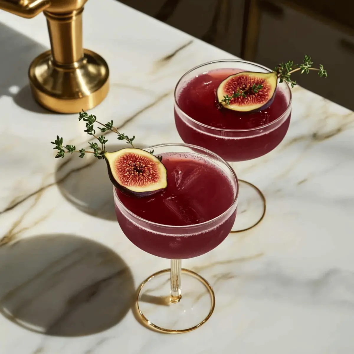 - Mix Ingredients: In a shaker, combine fig jam, gin, lemon juice, and thyme syrup. Shake with ice for 15 seconds.
