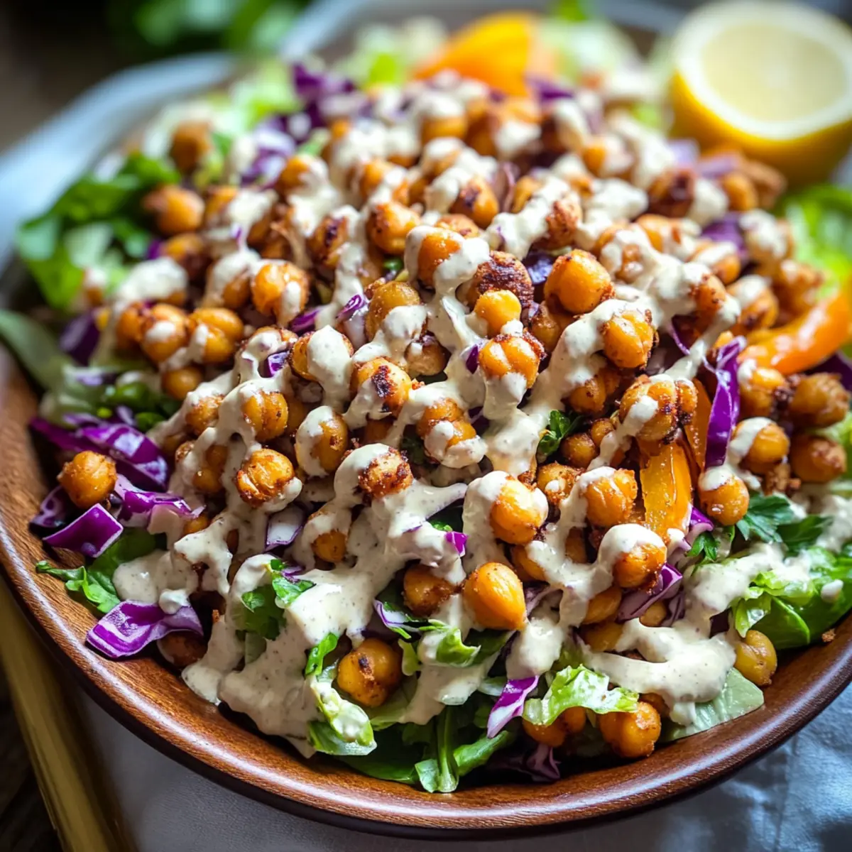 As I stood in my kitchen, the inviting aroma of roasted spices wafted through the air, instantly transporting me to bustling markets in the Mediterranean. This Crispy Vegan Chickpea Chopped Salad with Creamy Lemon Tahini Dressing is my go-to for a nutritious meal that’s both vibrant and satisfying. Whipping it up is a breeze, making it perfect for busy weekdays or leisurely weekends. Packed with protein from chickpeas and a colorful medley of fresh vegetables, this salad not only delights the senses but also keeps hunger at bay. Whether you’re looking to impress guests or simply enjoy a wholesome, homemade dish, this recipe invites you to indulge in its deliciousness. Curious about how a simple salad could make your meals feel so special? Let’s dive in!