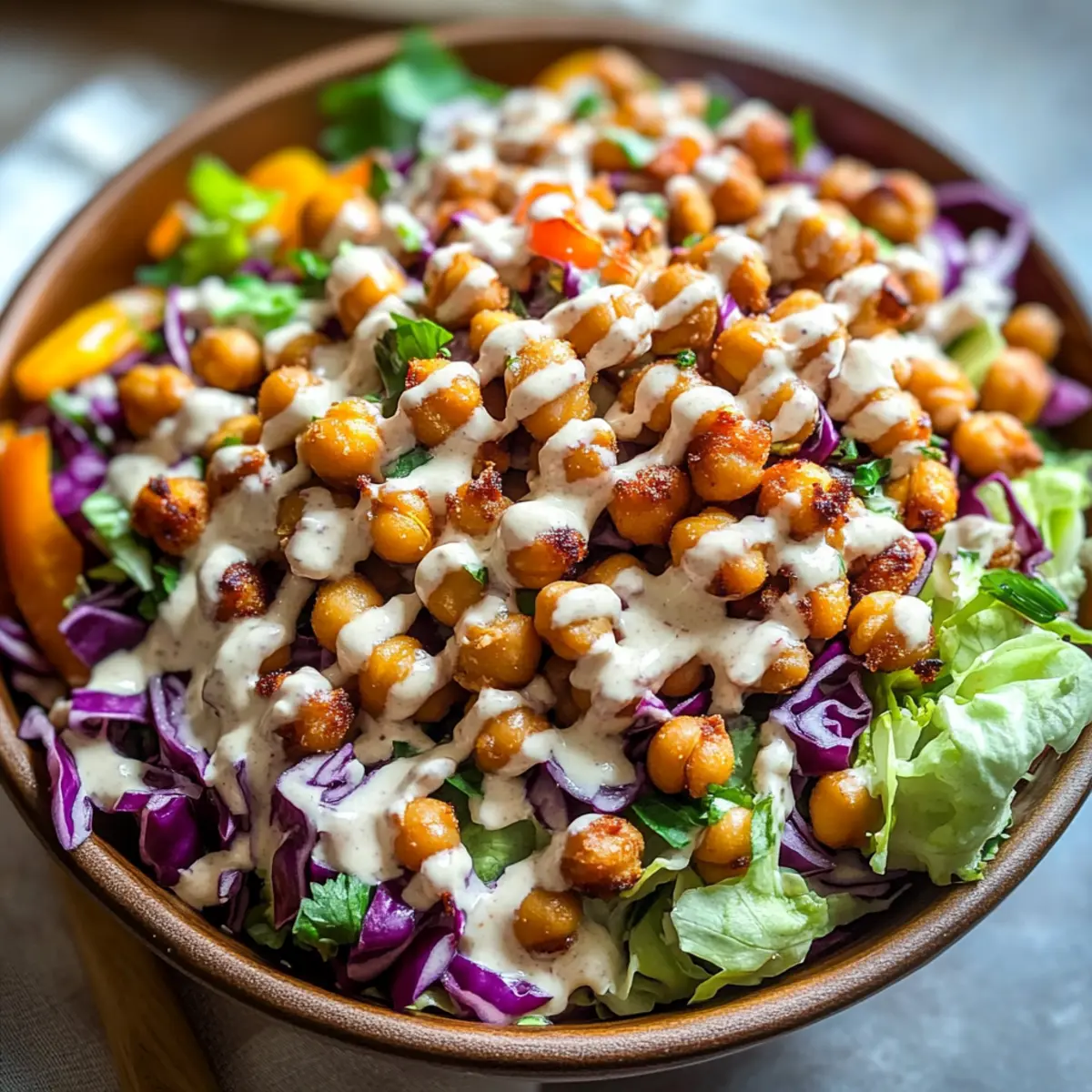 Ensure chickpeas are drained and patted dry for maximum crispiness. Store components separately until ready to serve for optimal freshness.